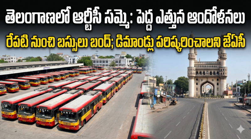 హైదరాబాద్: తెలంగాణలో ఆర్టీసీ కార్మికులు తమ డిమాండ్ల సాధనకై సమ్మె బాట పట్టారు. రాష్ట్ర ప్రభుత్వం మరియు ఆర్టీసీ యాజమాన్యంతో ఆర్టీసీ జాయింట్ యాక్షన్ కమిటీ (JAC)